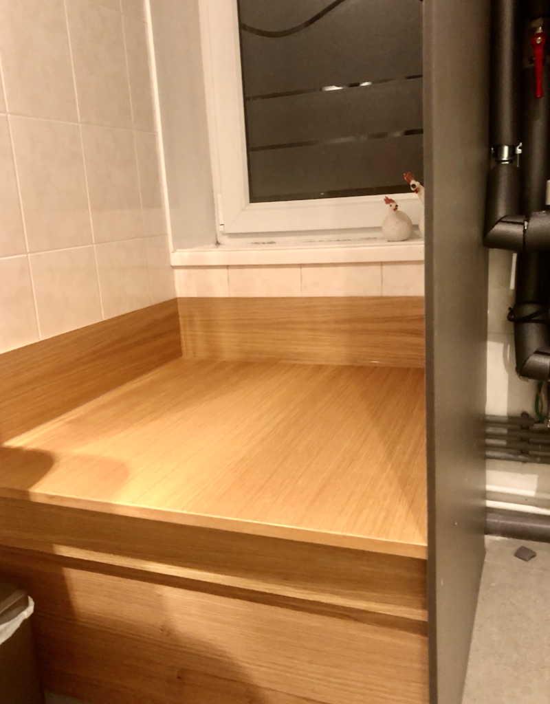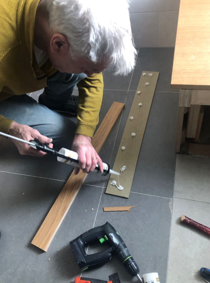 Vandaag komt Arno om de klus in de logeerbad-kamer af te maken. Samen met Ap zijn ze lekker bezig. Berna maakte een lekkere lunch klaar. Om 14 uur is de klus klaar. Er is een houten constructie gemaakt op de plek waar het bad stond en een mooie plaat tussen het raam en de installatie.