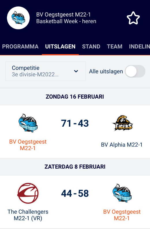 Tygo moet vandaag UIT spelen in Barendrecht. Ap gaat mee. We zijn er ruim op tijd. Niet alleen Ap moet bankzitten maar ook Tygo krijgt erg weinig speelminuten. Dat vindt hij niet leuk en onderweg terug was ie niet erg spraakzaam. Ze wonnen wel met 114 tegen 54.
