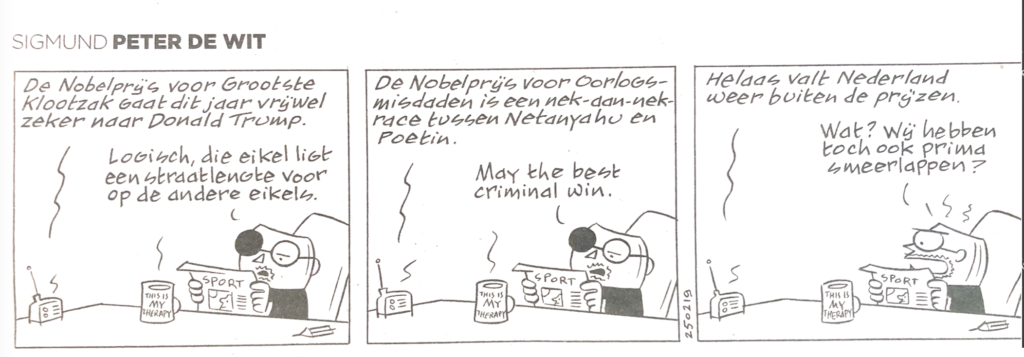 Wat een onbehouwen man is Trump! Als een olifant loopt hij door de porseleinkast van het Oekraïne dossier. Hij deelt cadeautjes uit aan Poetin en Poetin-gezinde landen en verkwanselt de kwetsbare belangen van Oekraïne zelf en ook die van Europa. Hij verwijt Zelensky dat hij niet eerder een deal met Rusland heeft gesloten en dat Europa intern verrot is. Te woke!! Terwijl hij zelf rechtstatelijk Amerika bij het vuilnis zet. Het probleem is dat we in Europa landen hebben met groeiende partijen die datzelfde willen doen. Die ook kiezen voor dictatoriale democratie. Voor eigen recht eerst.