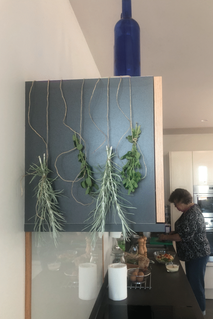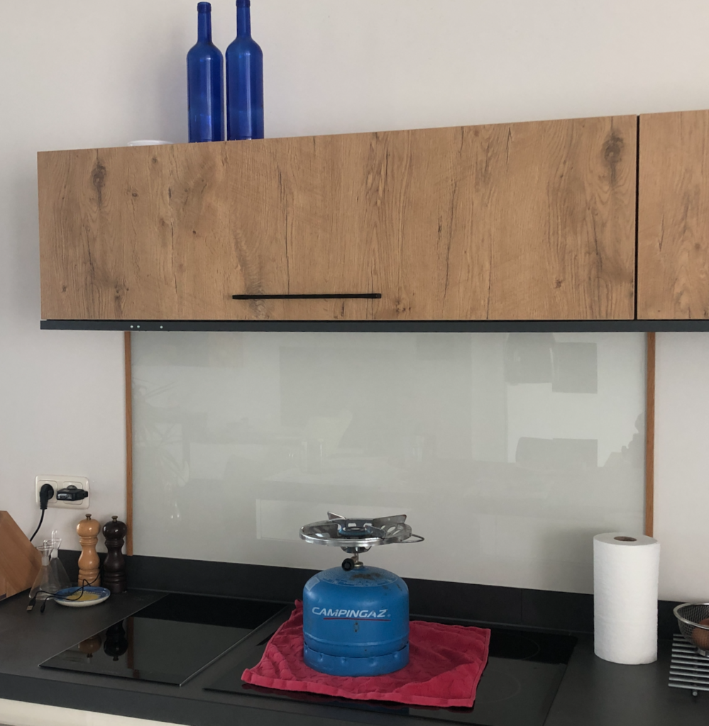 Vandaag heb ik (Berna) een flesje met geurstokjes op onze stenen bij de voordeur neergezet om de vieze geuren van rook een kook uit een ventilatierooster bij de deur te maskeren. Wij denken dat men ergens een mechanische afzuigkap aan het ventilatiesysteem heeft gekoppeld.