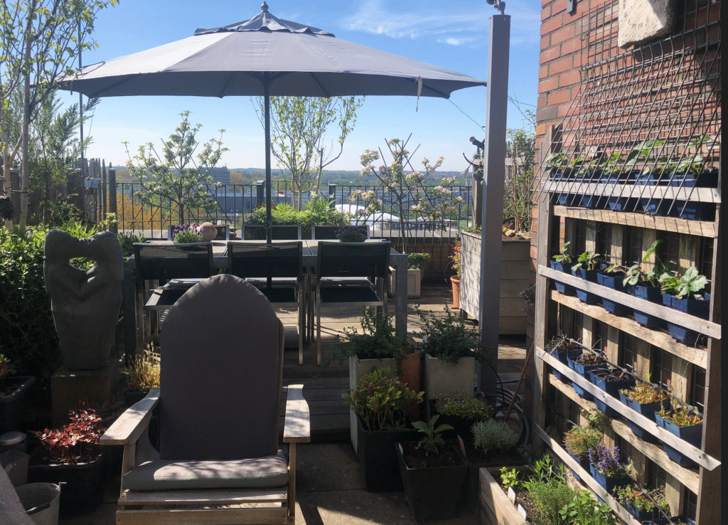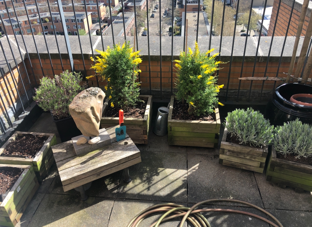 Ap heeft de lente in de kop, dus: werken in de daktuin. Snoeien (er komt geen vorst) en opruimen. Bikkel. De Gingko is geruimd voor de Glansmispel die Berna cadeau kreeg van de L’dorpse familieleden.