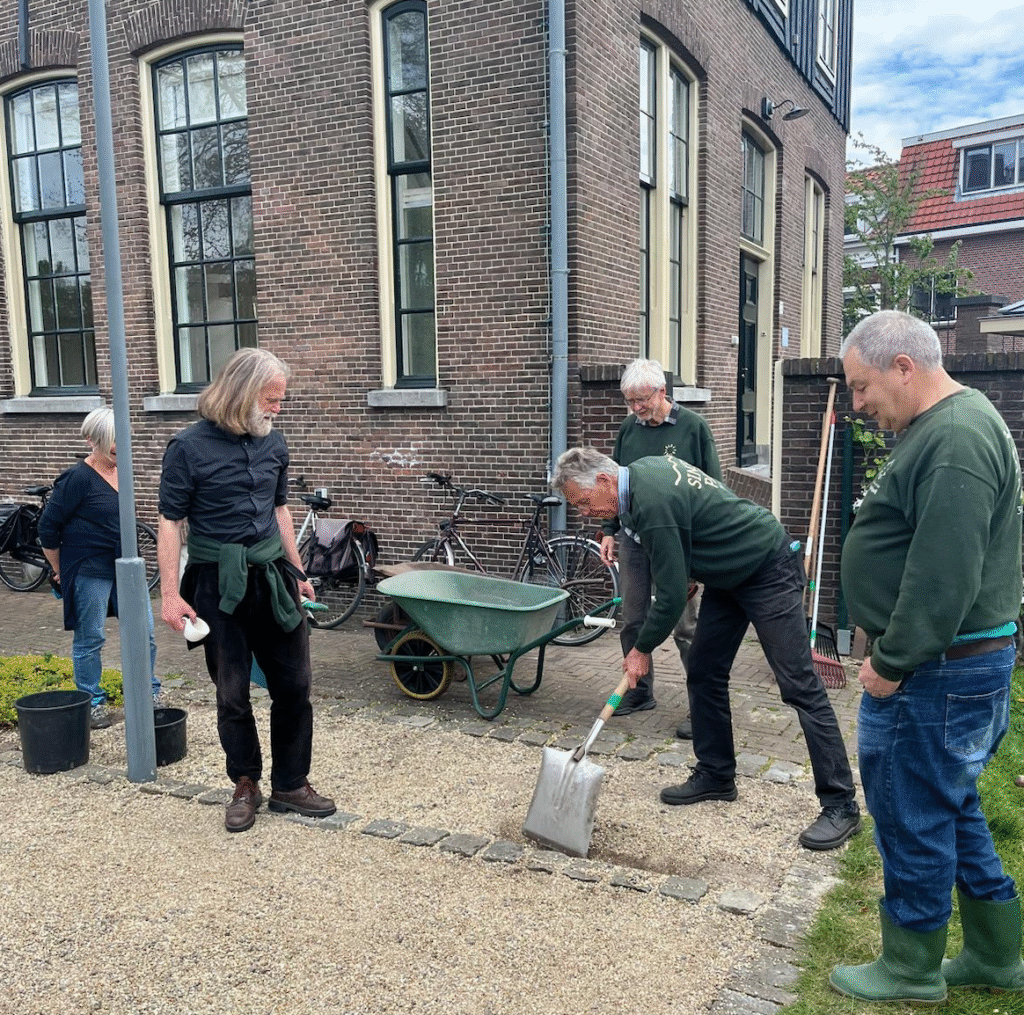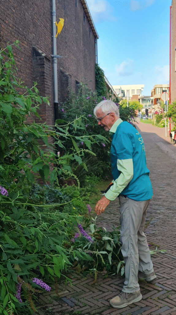 We brengen 2 kratjes vol bij Café Abel bij de hoofdingang van het museum aan de Steenstraat. Zoals een paar jaar geleden. Met een bordje erbij “Uit eigen tuin/ gratis mee te nemen/ Singelpark”.
