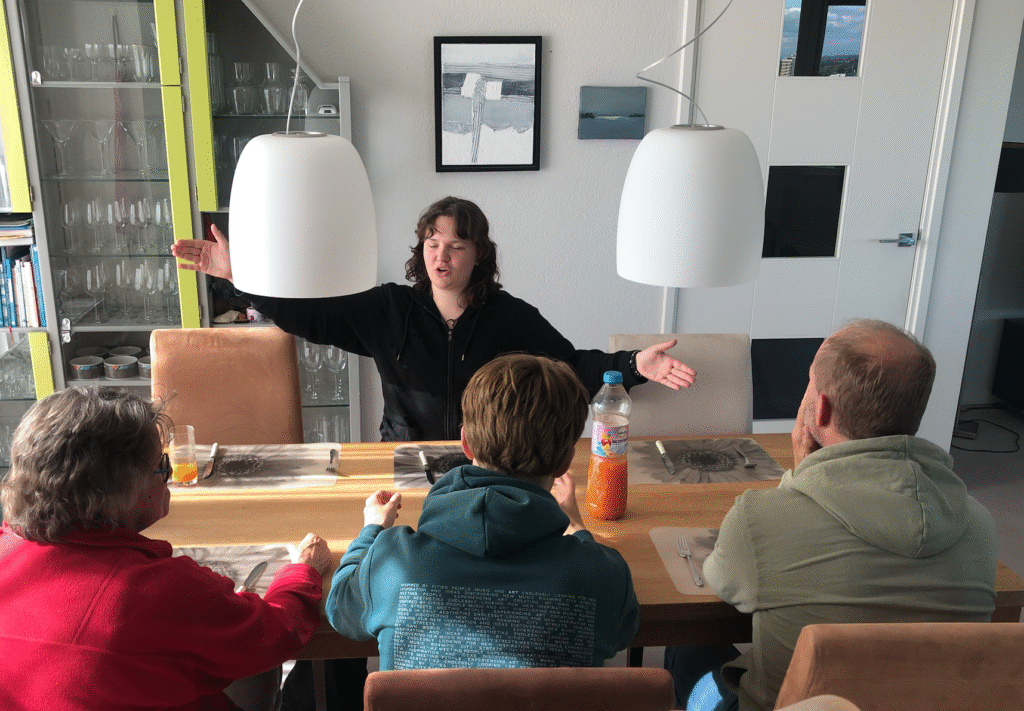 In de avond komen Monika en Peter langs voor een borrel en een babbel met kleine hapjes. Peter heeft nieuwe “oortjes” en kan nu veel beter meedoen aan het gesprek.