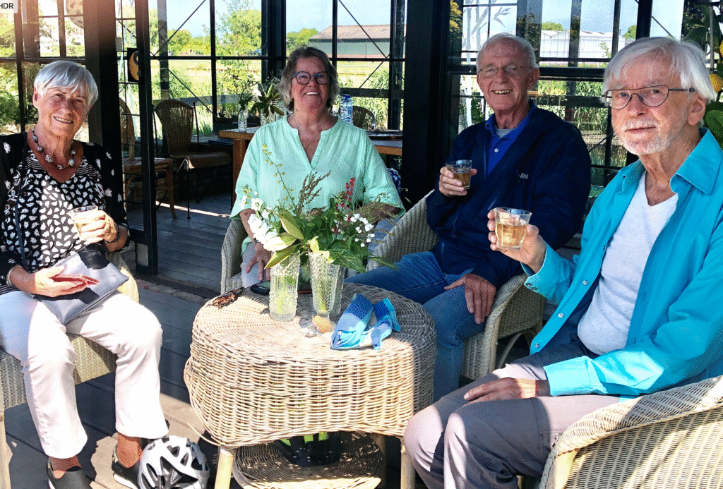 Dymph en Wim komen bij ons lunchen. Het is al weer even geleden dat wij hen gezien hebben. Ze waren niet op Berna’s verjaardag vanwege een grote knieoperatie bij Dymph. Ze kon hier maar moeilijk de trap op. Over 2 weken vertrekken zij voor 2 maanden naar Andalusië.