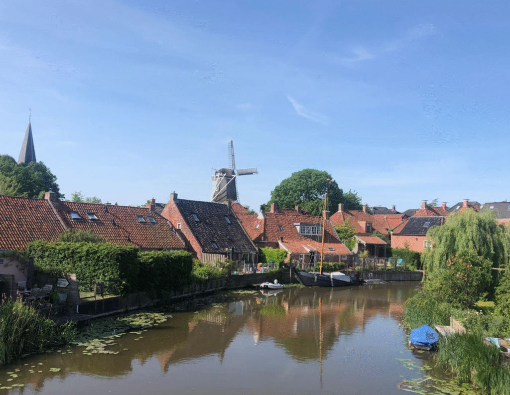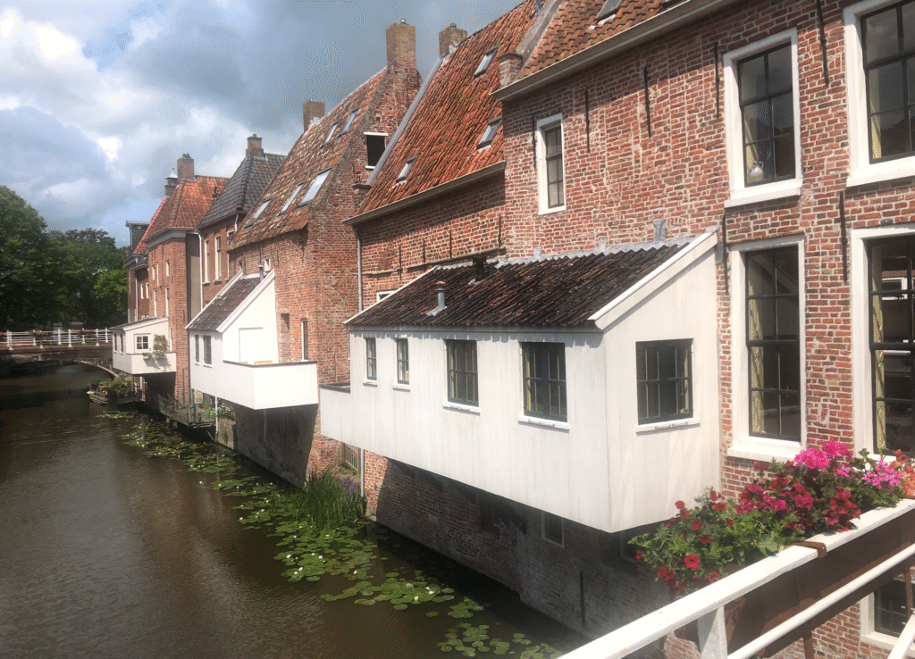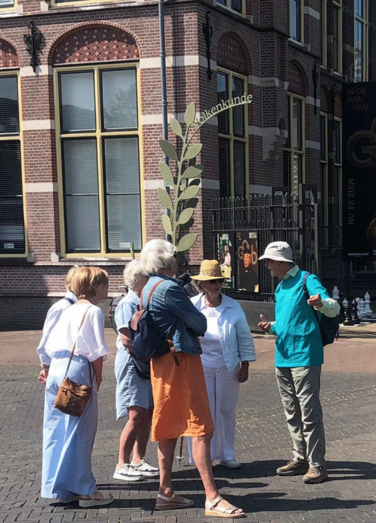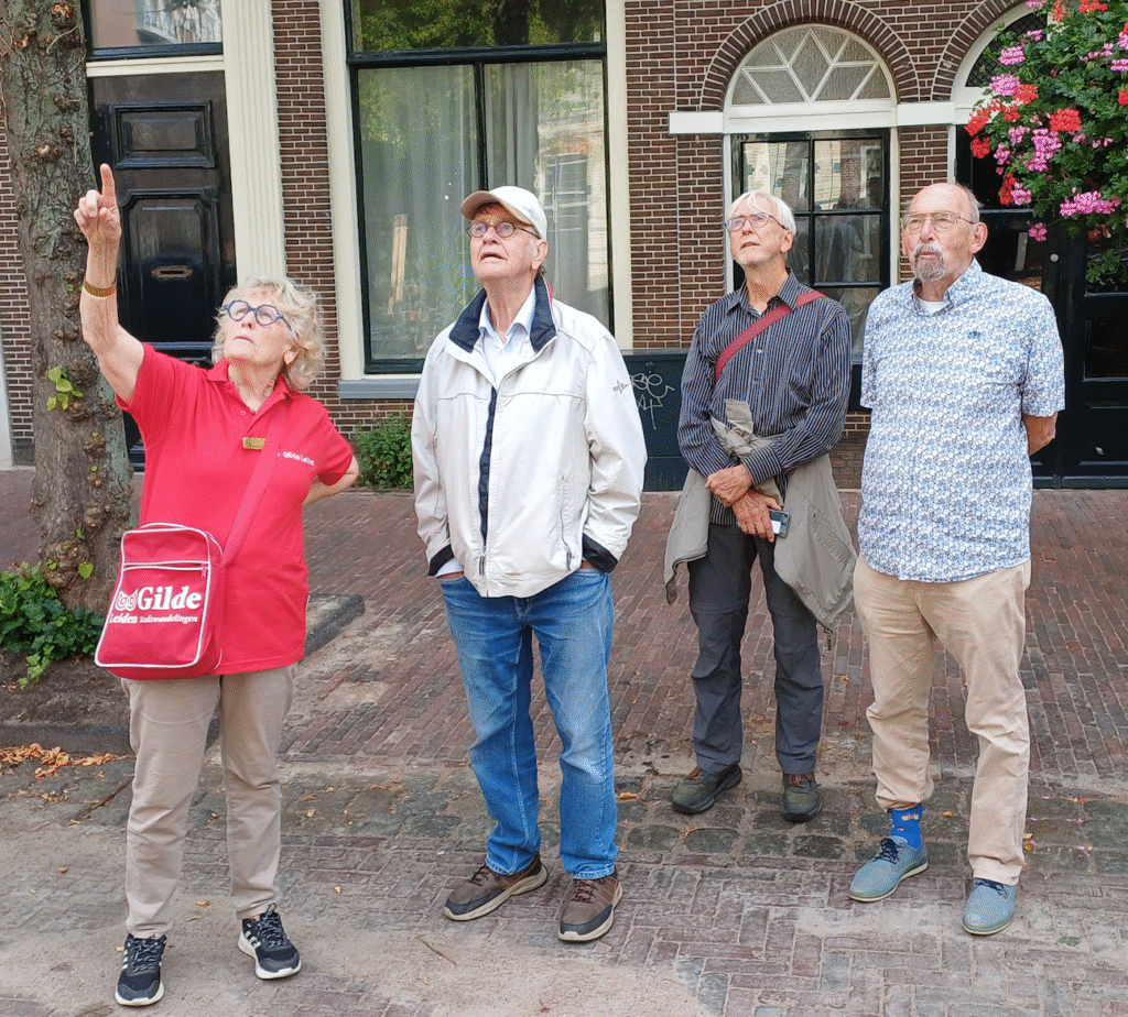 De mannen vonden dit een heel goed idee. Zo bekeken we ongeveer de helft van de stad. Via de prachige Groenesteeg reden we terug naar het centrum Bij Burgerzaken en nam Ap weer afscheid. Zij wilden nog naar Naturalis.