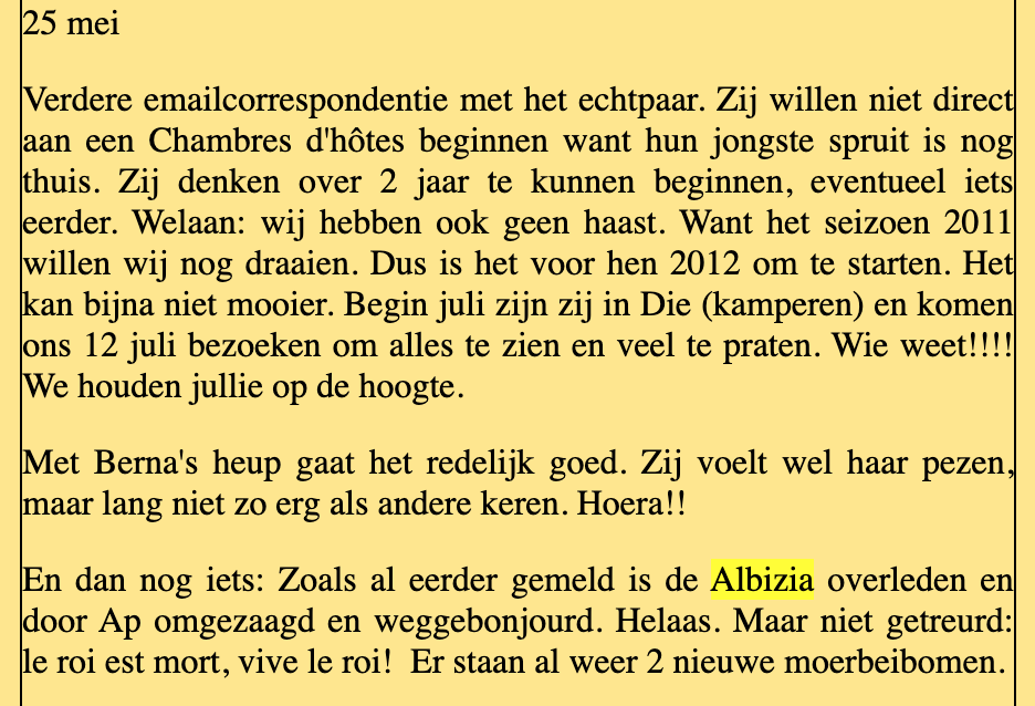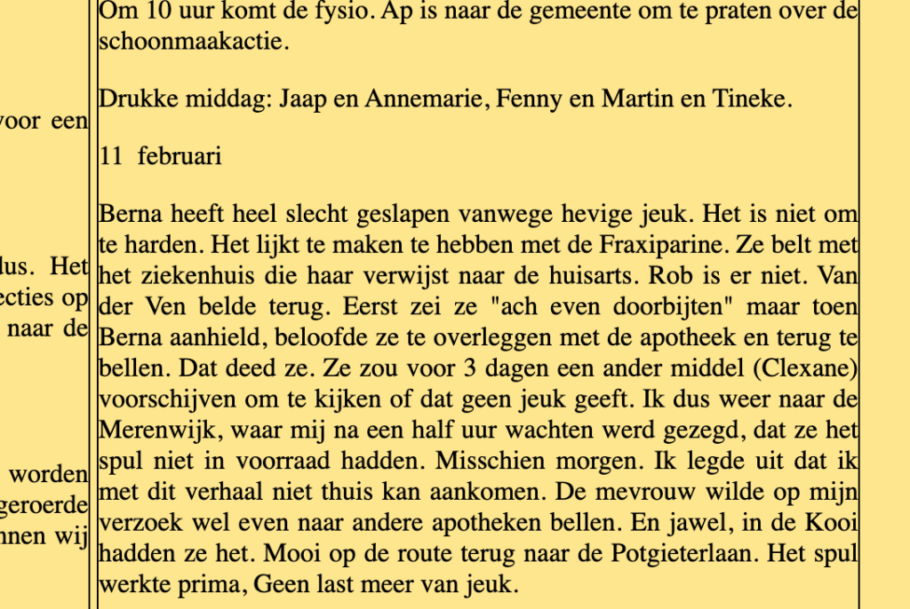 De komende week zit voor Berna bijna helemaal vol met juridische- en gezondheidszaken; zoals daar zijn: maandag 1e mediationgesprek; dinsdag telefonisch pre-operatiegesprek met de anesthesist; woensdag gehoortest en mogelijk aanschaf nieuwe hoortoestellen; donderdag ff niks. Pfff. En ondertussen de psychische druk van de mediation. In de tussentijd is Ap nog in de weer voor Humanitas.