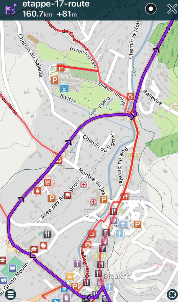 We kwamen stevige klimmetjes tegen, zoals deze: De Col de Bisselt (beklimming 10%, gedurende 2,6 km, afdaling 8%). Het lijkt hier op Zuid-Limburg maar het is er veel stiller; veel minder grote groepen hijgende fietsers. En dus aangenamer.