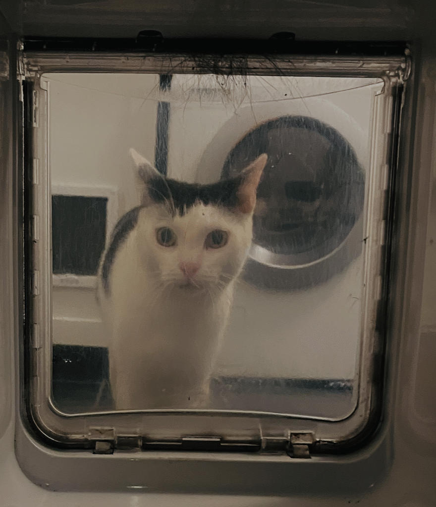 Om 14 uur weer thuis. Het is er lekker warm, want bij vertrek uit Koewacht hebben we de warmtepomp uit zijn korte slaap gewekt.