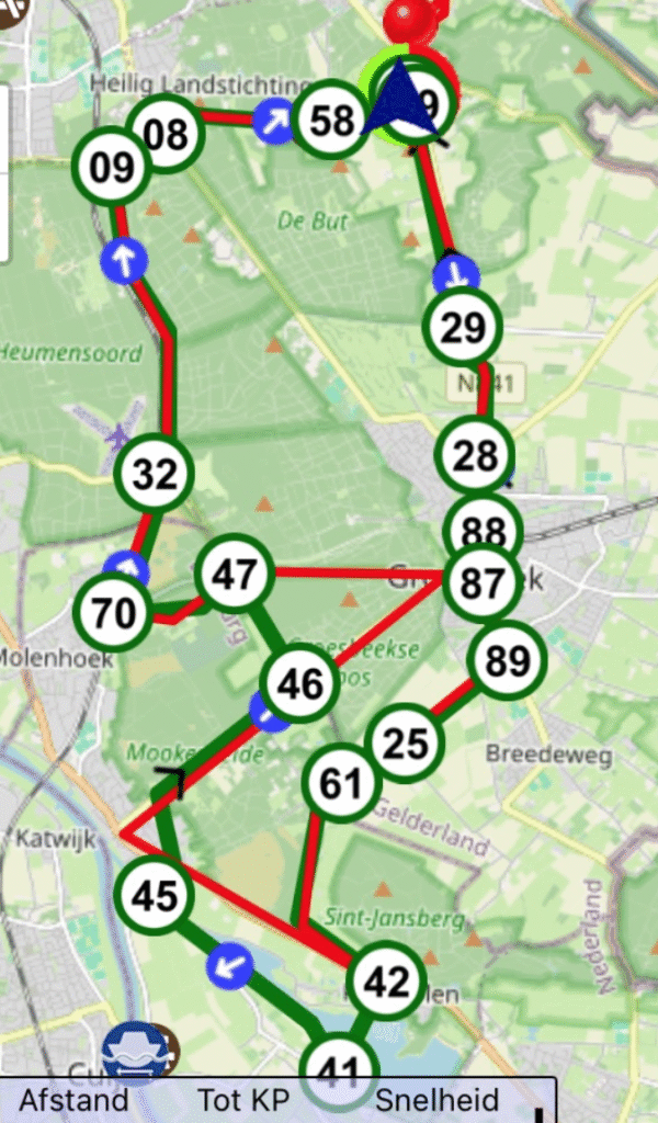 We skippen de stadswandeling en ook het bezoek aan de Hortus. In plaats daarvan gaan we via Heumensoord (Natuurmonumenten) en Groesbeek proberen de Duivelsberg te beklimmen.