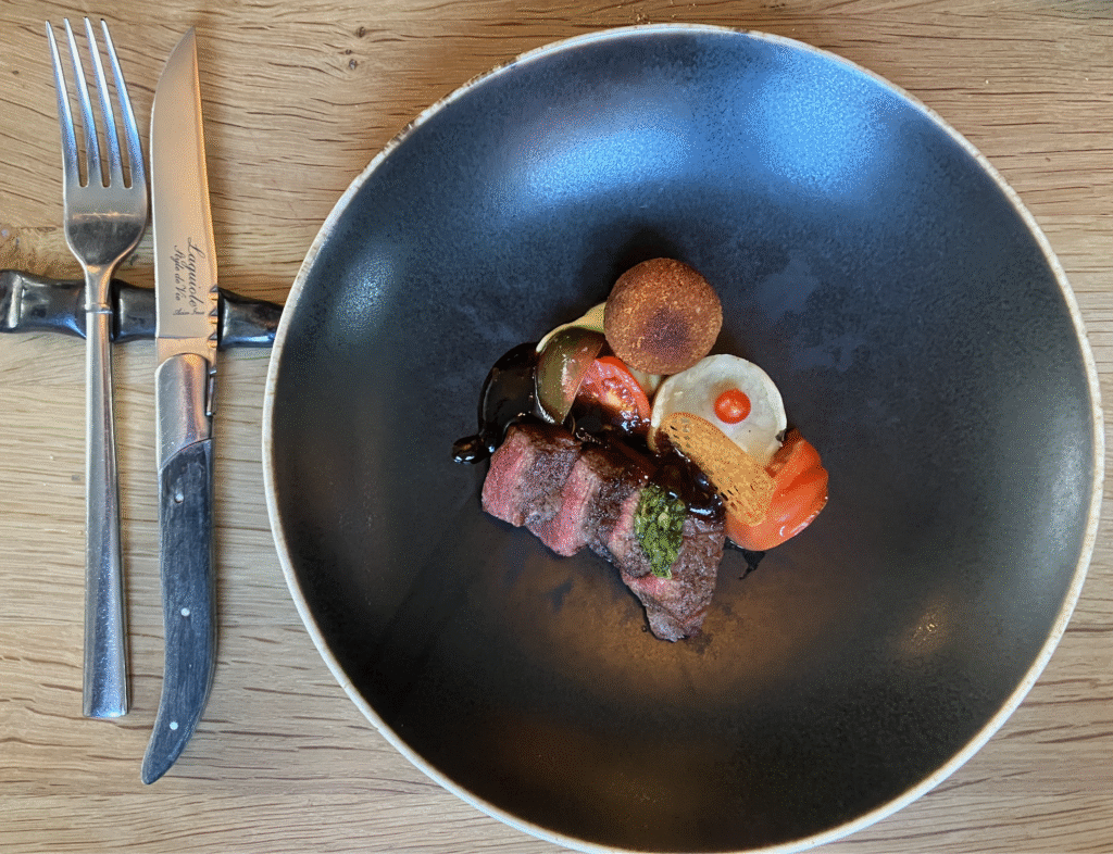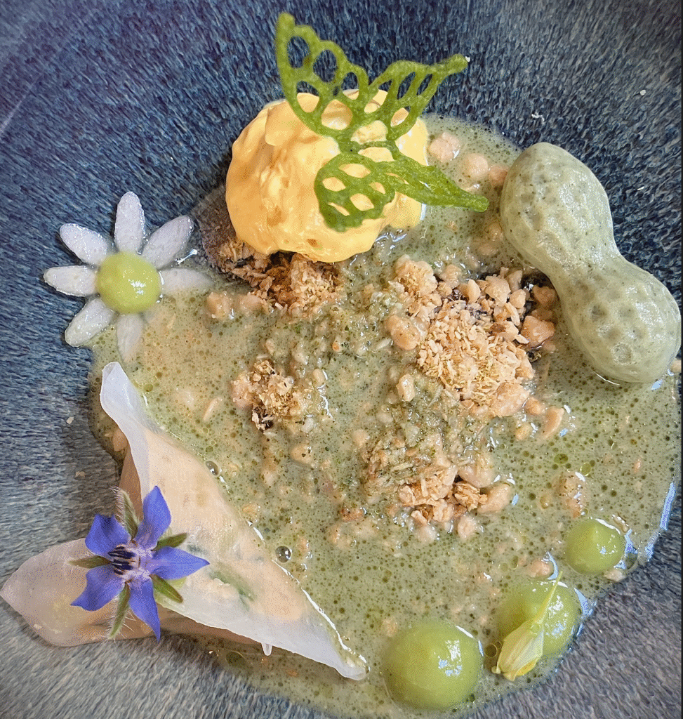 Thuisgekomen even uitzweten, want de temperatuur is tot 19 graden gestegen. Ap gaat direct verder met de puzzel. Om 2 uur fietsen wij naar restaurant Puur Sahn aan de beroemde Zevenheuvelenweg in Berg en Dal, op 5 minuten fietsen van ons huisje. We werden verrast door een serie subtiele gerechten. Alles uit eigen tuin. Telkens weer omlijst door prachtige wijnen. De bediening was perfect. Heerlijk. Thuis uitbuiken en puzzelen!