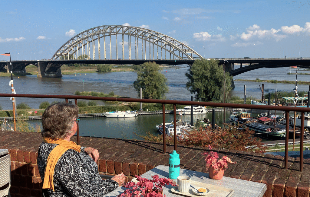 Bovenop is een horecalocatie gebouwd met uitzicht op de Waal en zijn 2 Waalbruggen. Een oude en een nieuwe voor het spoor.