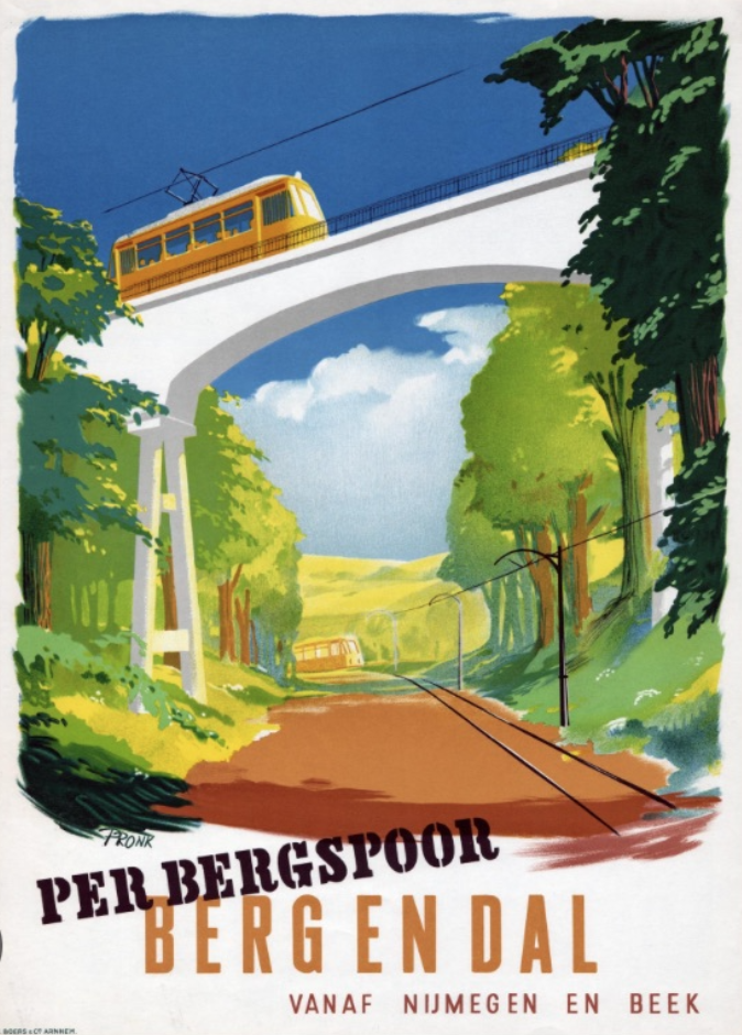 De wandeling voert ook langs het vertrekpunt van eerst de stoom- en daarna de electrische trein die naar Berg en Dal reed. Voor die laatste is toen veel reclame gemaakt.