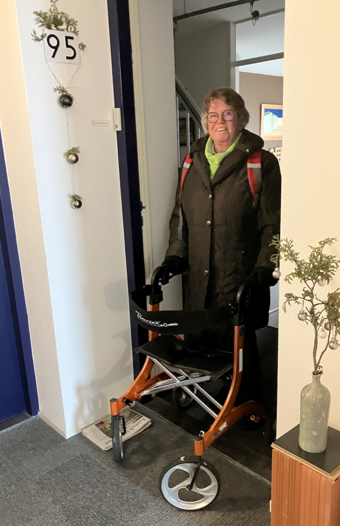 De fietsclub van Berna gaat vandaag niet fietsen vanwege teveel sneeuw. Berna nodigt ze uit voor een kop koffie op 12hoog. En dat vond men een goed idee. Thera nam wat voor bij de koffie mee, heerlijke gevulde speculaas door haar zelf gemaakt.