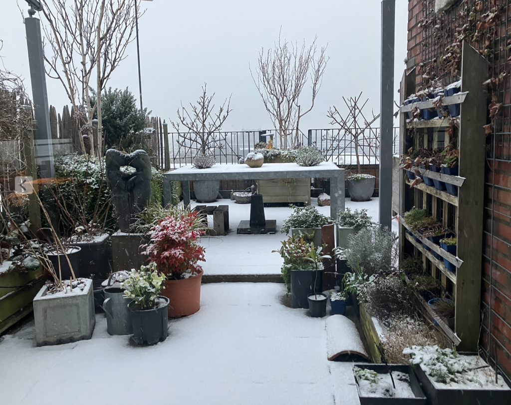 En ook onze daktuin ziet er winters uit.